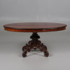 Pelarbord med oval skiva. Längd 137 cm, bredd 79 cm, höjd 67 cm.