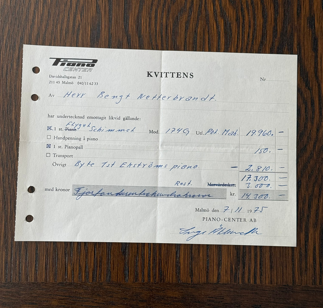 4334976. SCHIMMEL, FLYGEL, SERIENUMMER 146750.