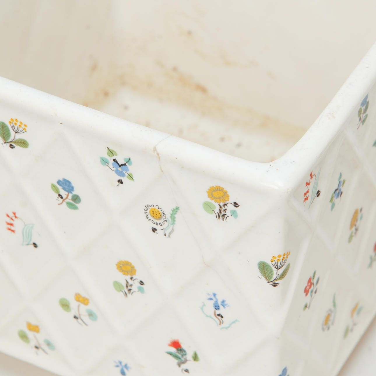 Skål med nagg. Ytterfoder med avlagringar och sprickor.