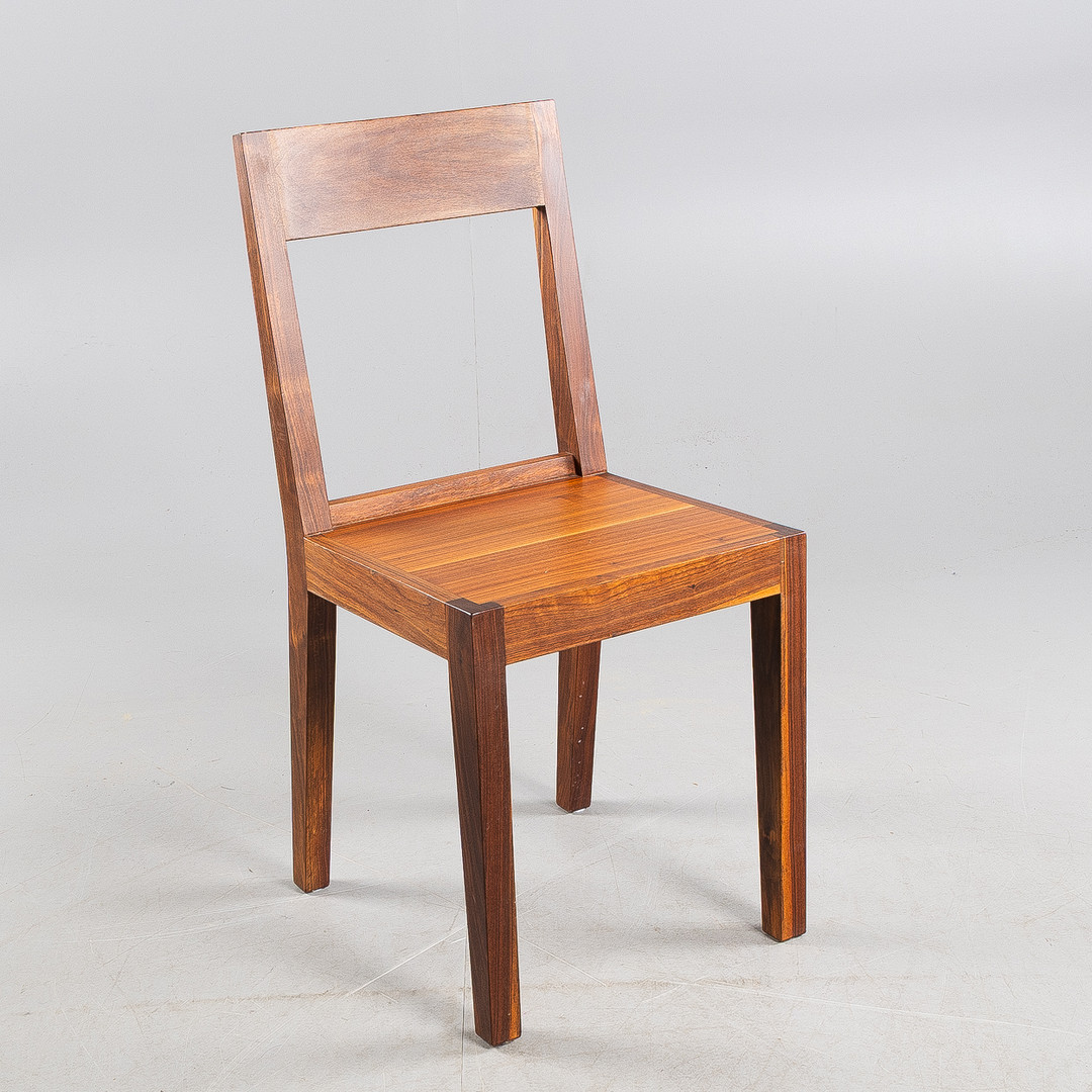 4336246. MATS THESELIUS. Stol, "Ruben", valnöt, brickmärkt.