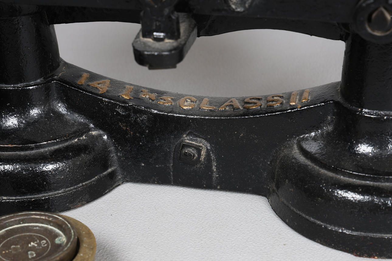 målad i svart och med en rad vikter, 36cm bred.