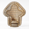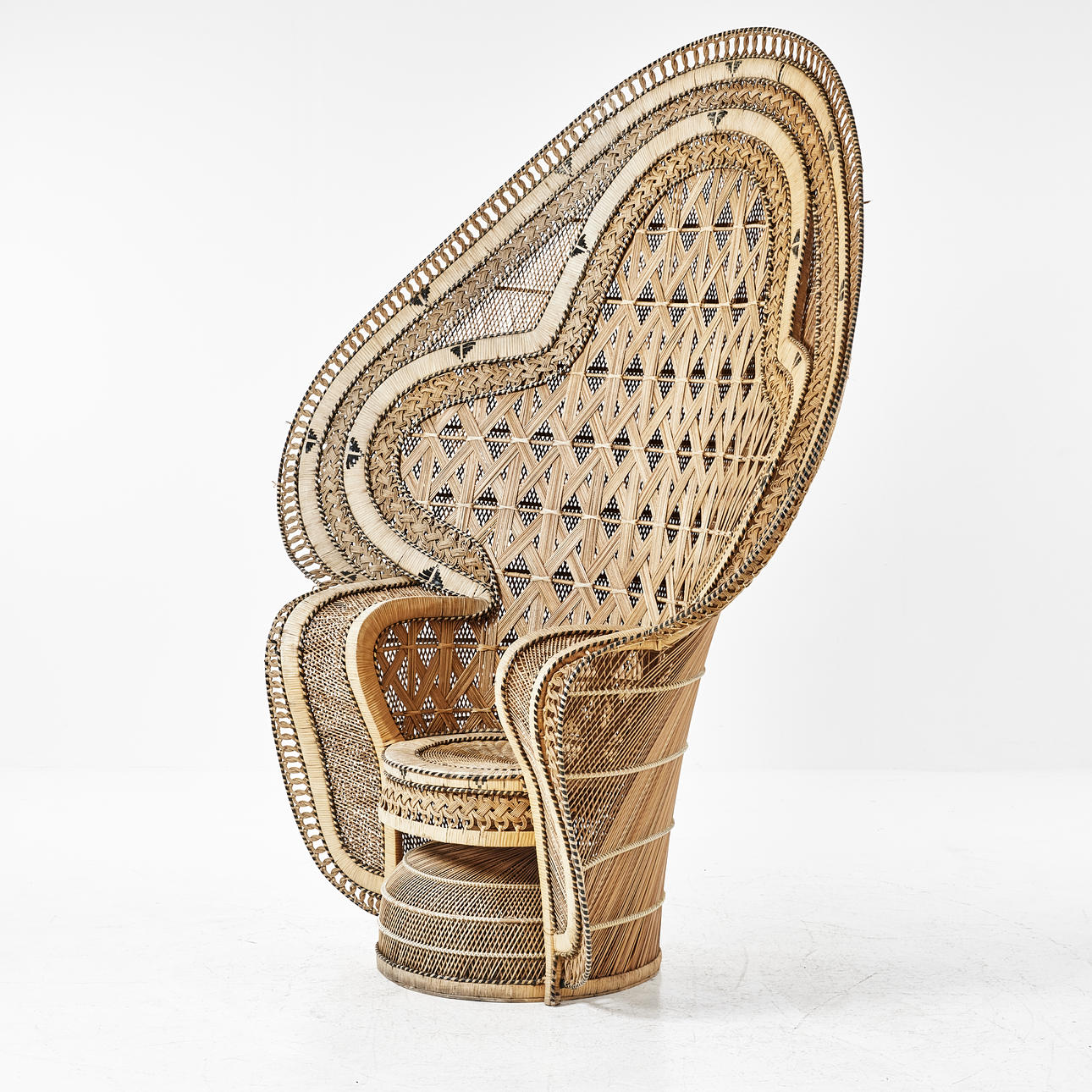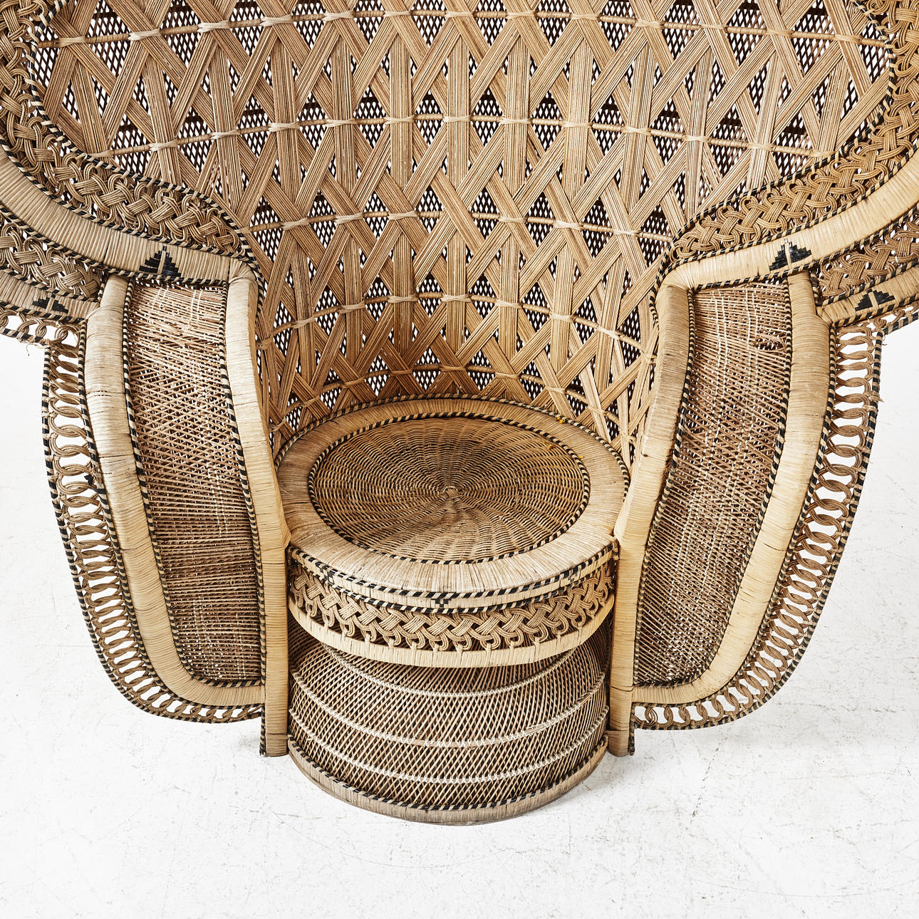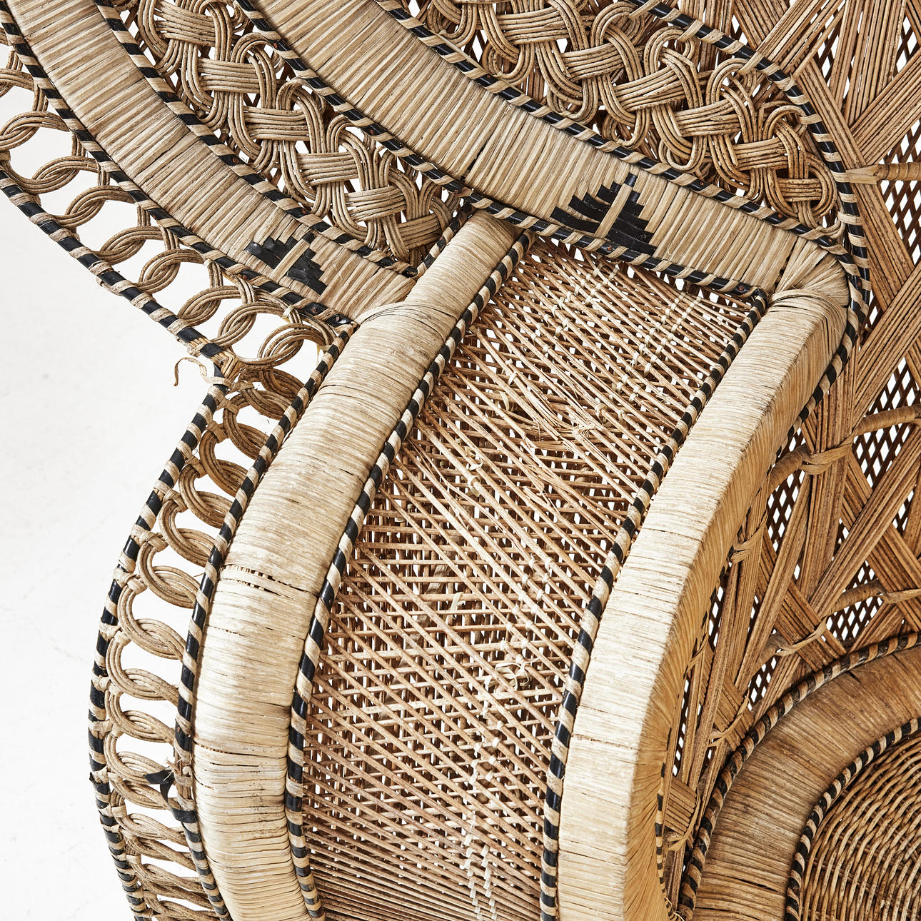 Bruksslitage, fläckar, rottingen ställvis med skador och hål, fuktskador.