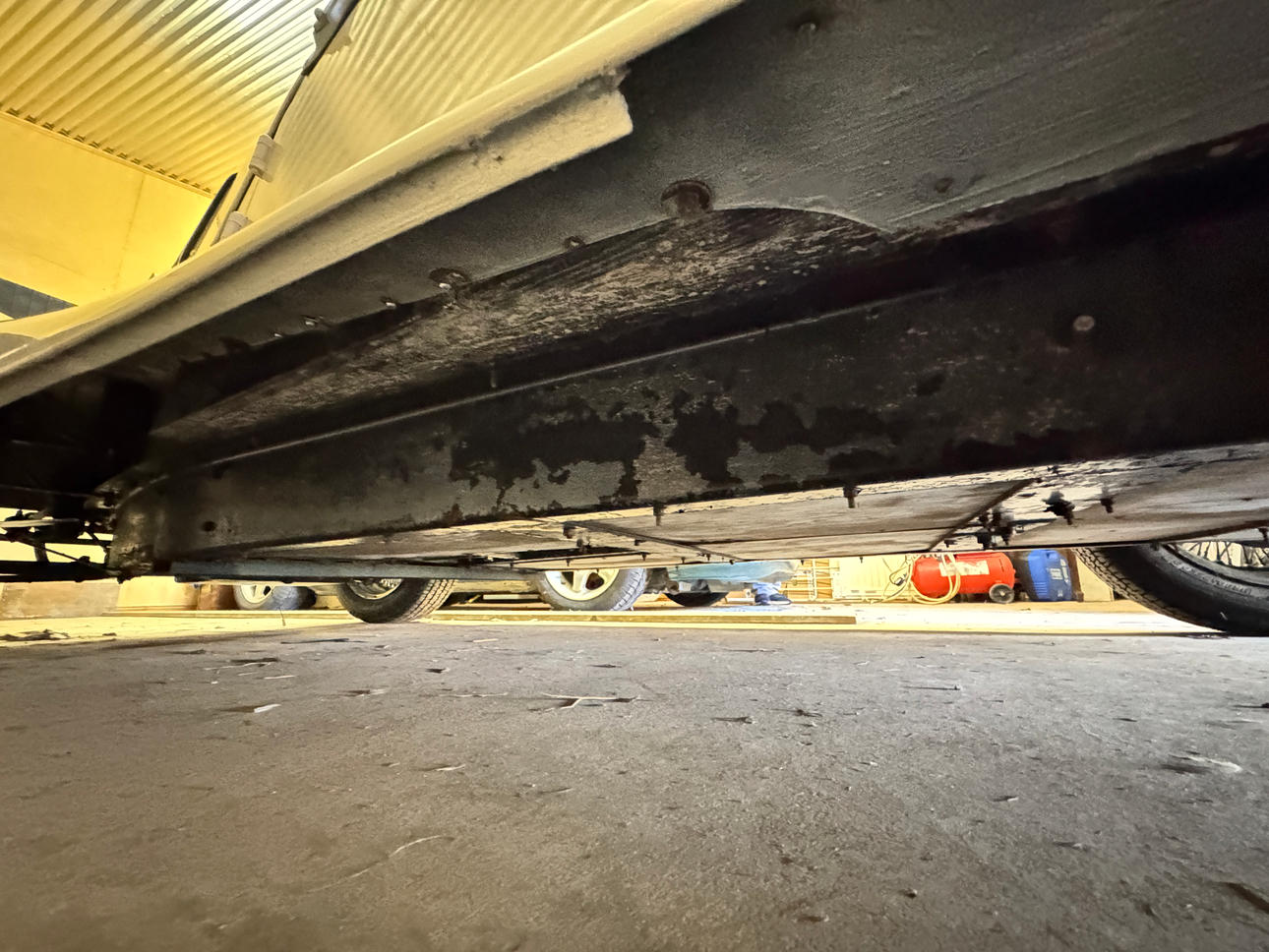 - Trots att bilen är i nyskick finns tecken på korrodering på aluminiumdetaljer, ytrost på skruvförband undertill med mera.