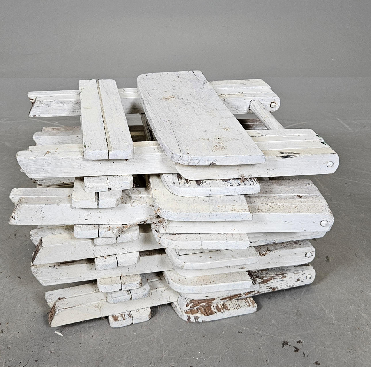 Sprickor, färgbortfall.
