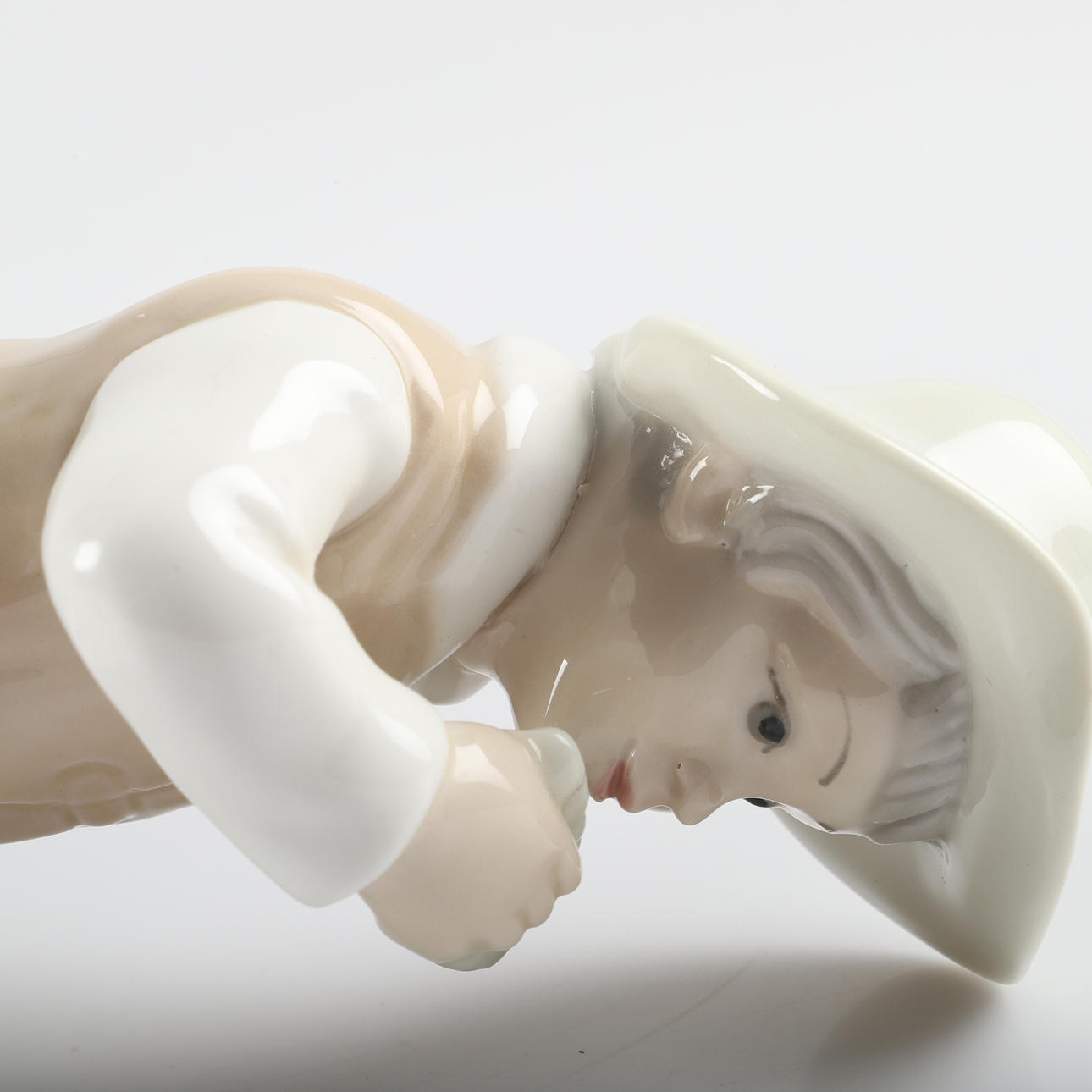 1 figurin med tillverkningsspricka runt huvudet, bruksskick.
