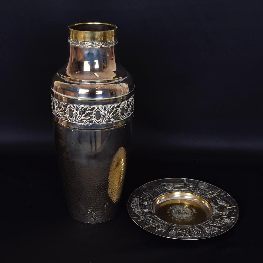 URNA SAMT MINNESFAT, nysilver, 1900-tal.