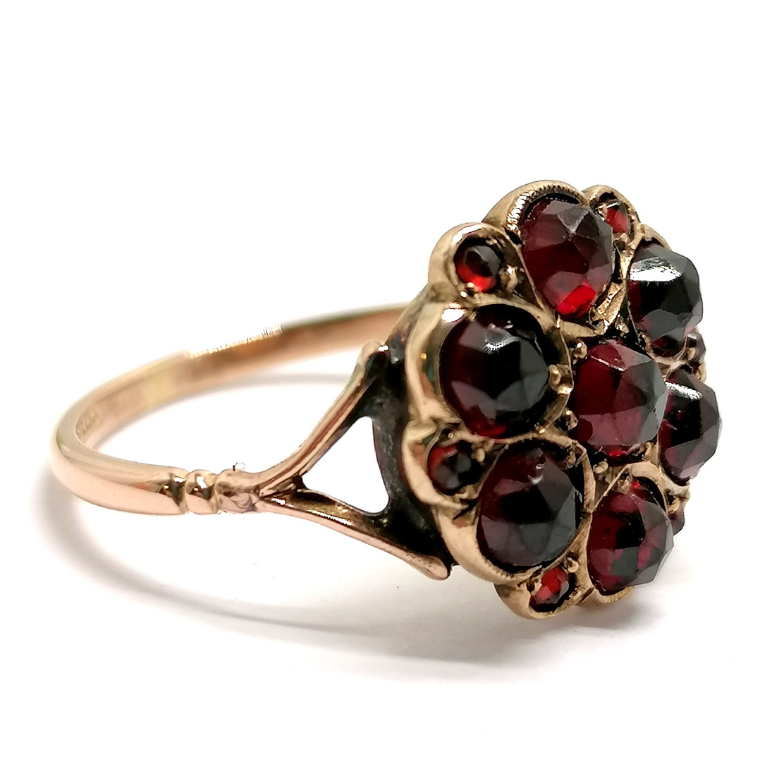4338175. ANTIK 9CT GULD GRANATKLUSTERRING.