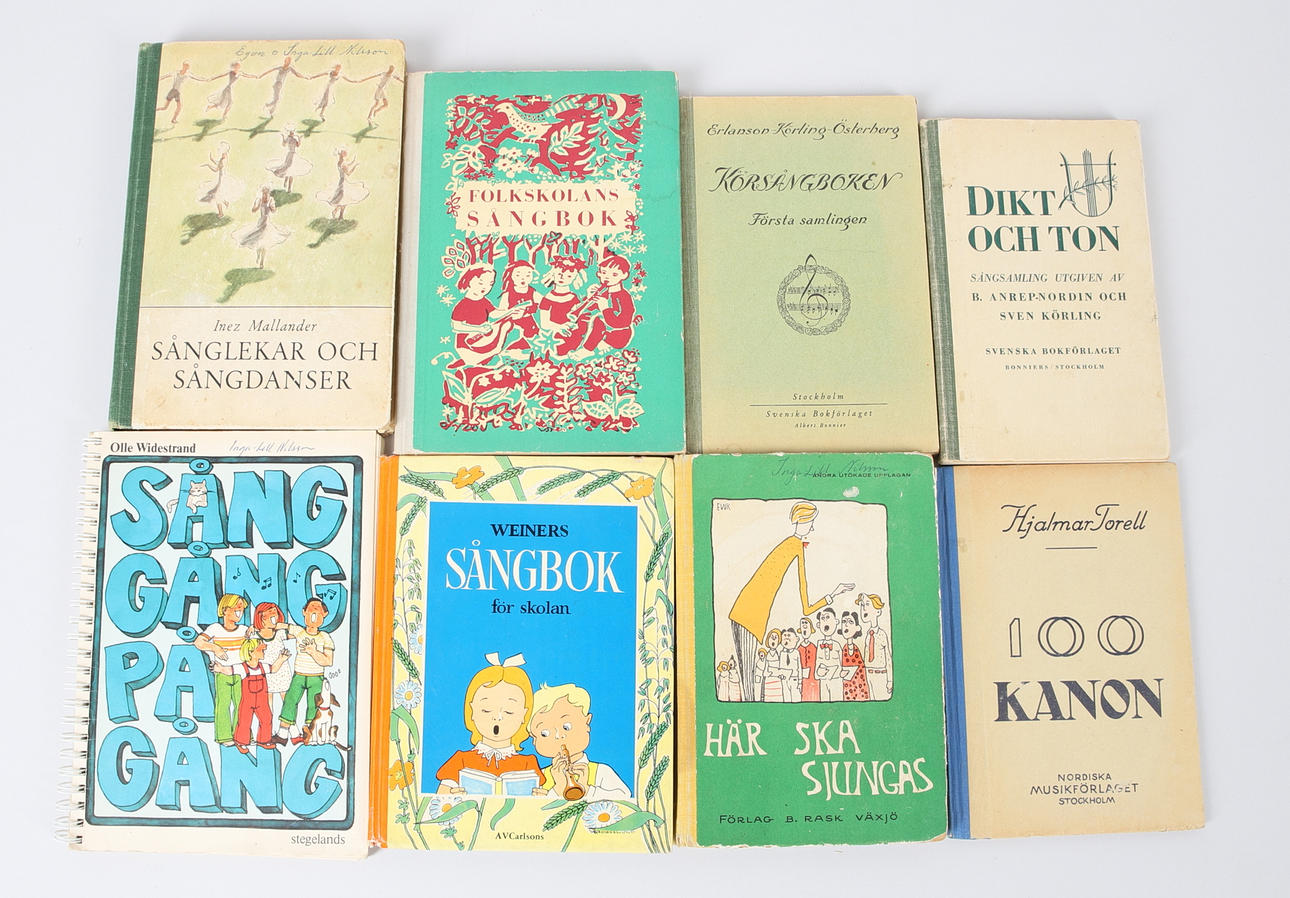 I urval: "Sveriges melodibok", "Visbok, min skattkammare", "Sång gång på gång", "Musevisa, Musik", "100 kanon", "Dikt och ton", "Körsångsboken", "Sånglekar och sångdanser", "Här ska sjungas", "Folkskolans sångbok", "Sångbok".