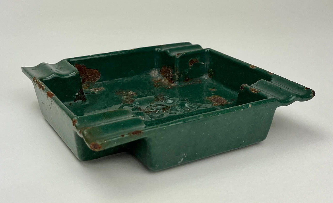 Askfat, emaljerat gjutjärn, ca. 13x13 cm.