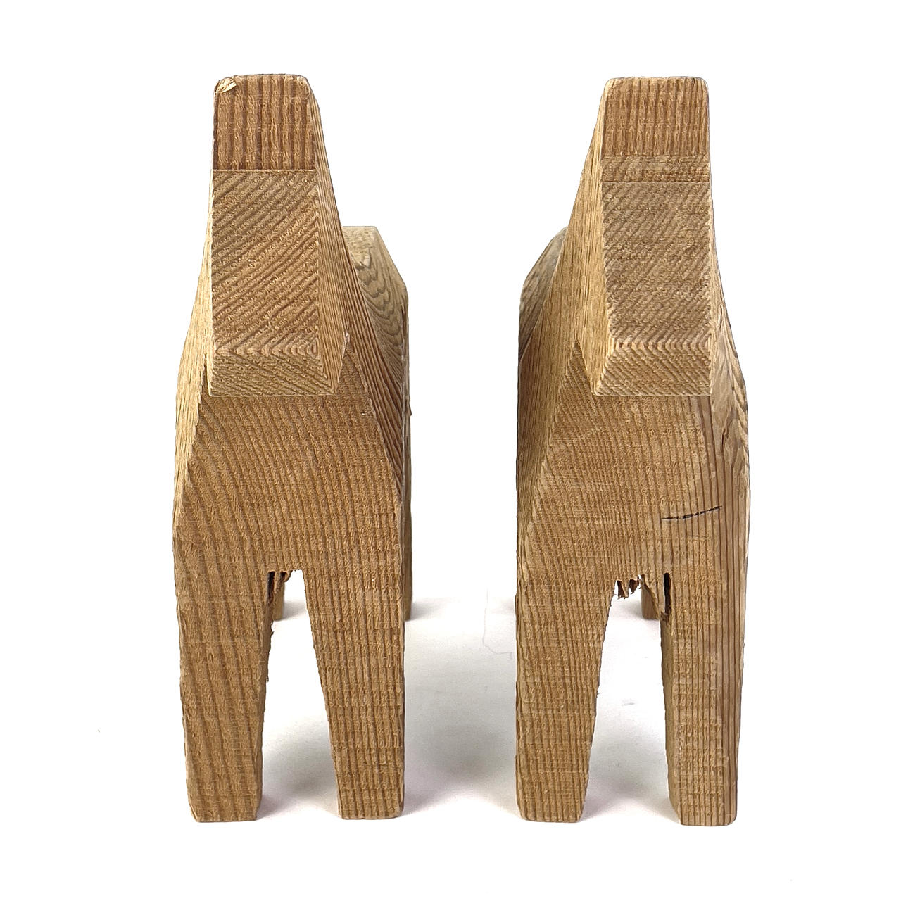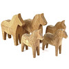 5 st omålade dalahästar, höjd ca 13-17 cm, längd ca 12-17 cm.