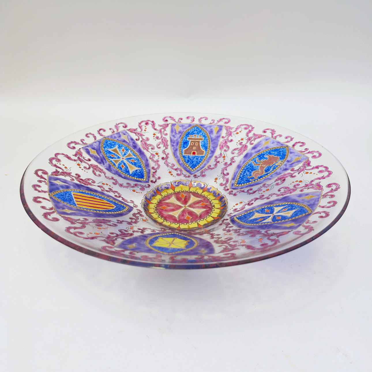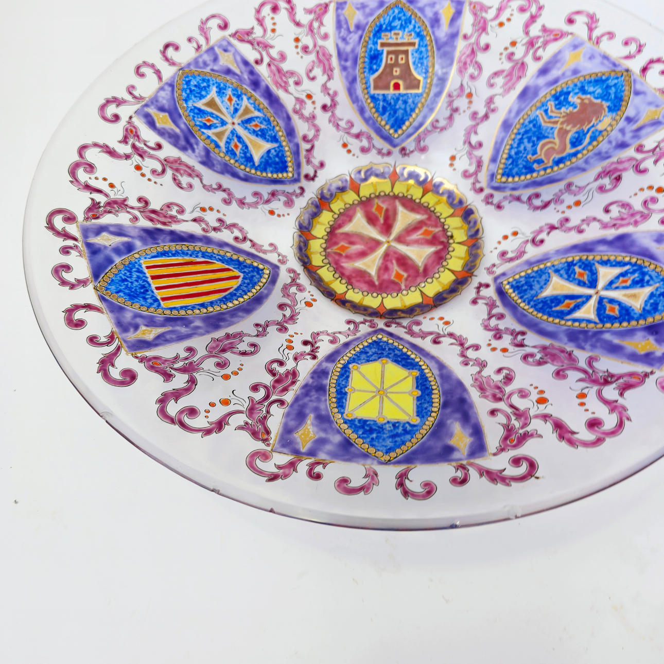 4340189. GLASPLATTA. HERALDISKA RITNINGAR. KATALANSKA. POLYKROM FÖR HAND.