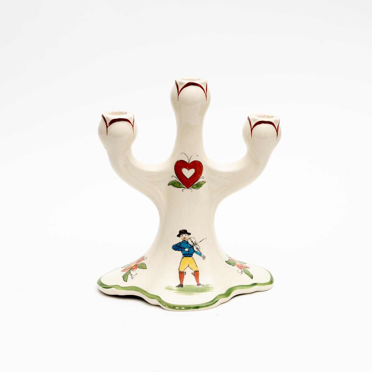 Motiv av allmogefigurer. För tre ljus. Höjd ca 25 cm.