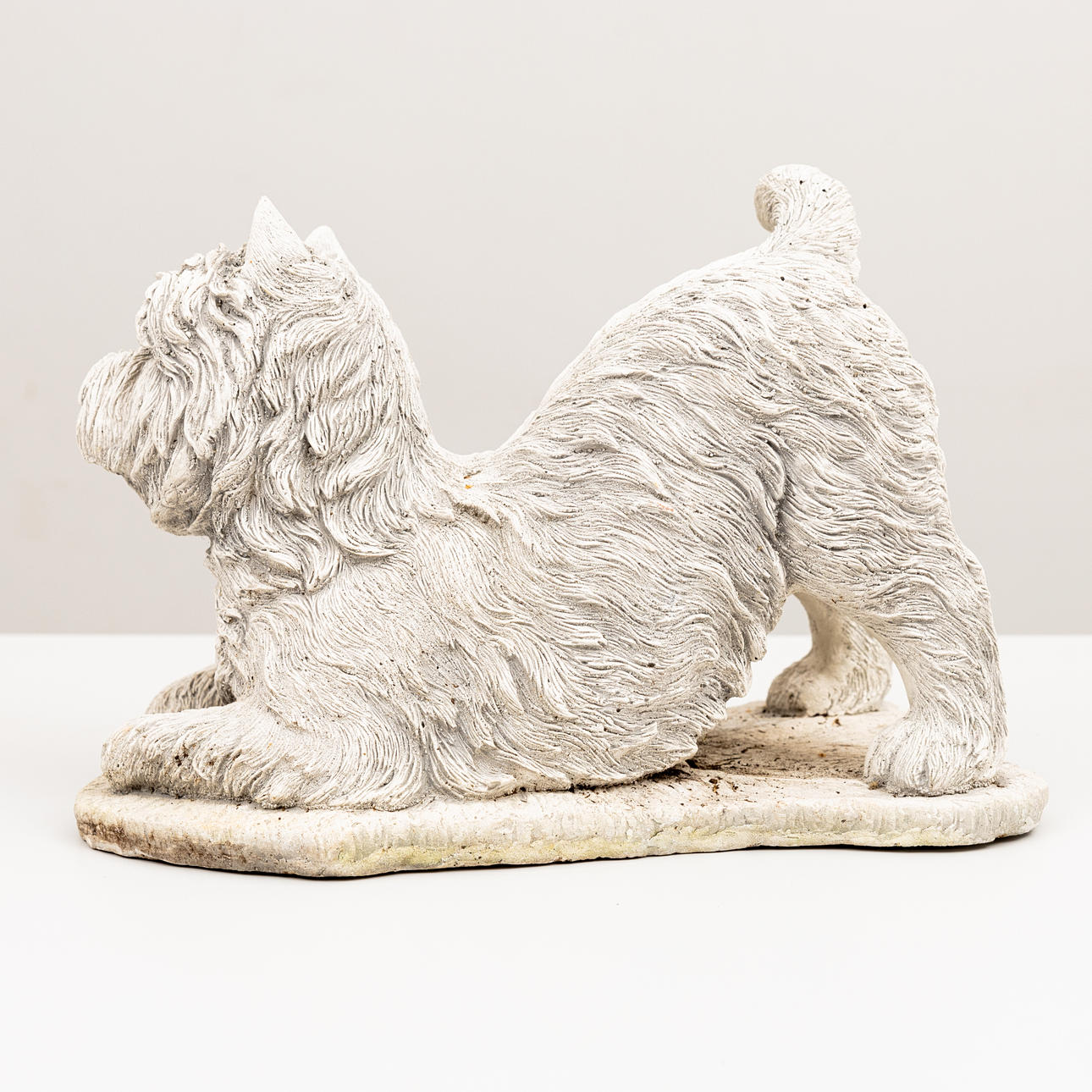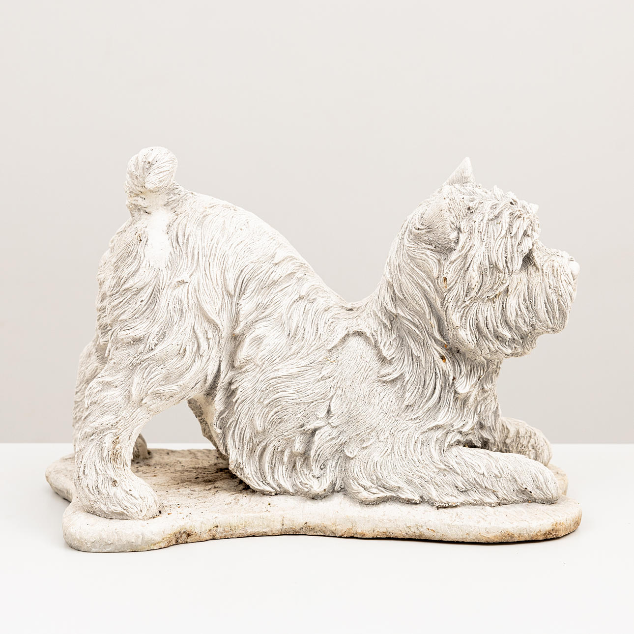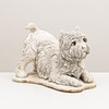 Lekande hund. Längd 33, höjd 25 cm.