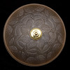 Form pressat glas med lövdekor. Diameter ca 34 cm. Höjd 25 cm.