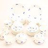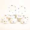 9 kaffekoppar, höjd ca 7 cm, diameter ca 8 cm 2 Sockerskålar 2 Gräddkannor 28 Assietter, diameter ca 17,5 cm.