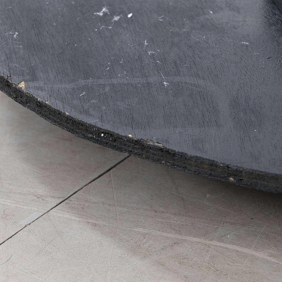 Samtida replika av en vikingasköld, med blåa och svarta fält. Tillverkad i trä.