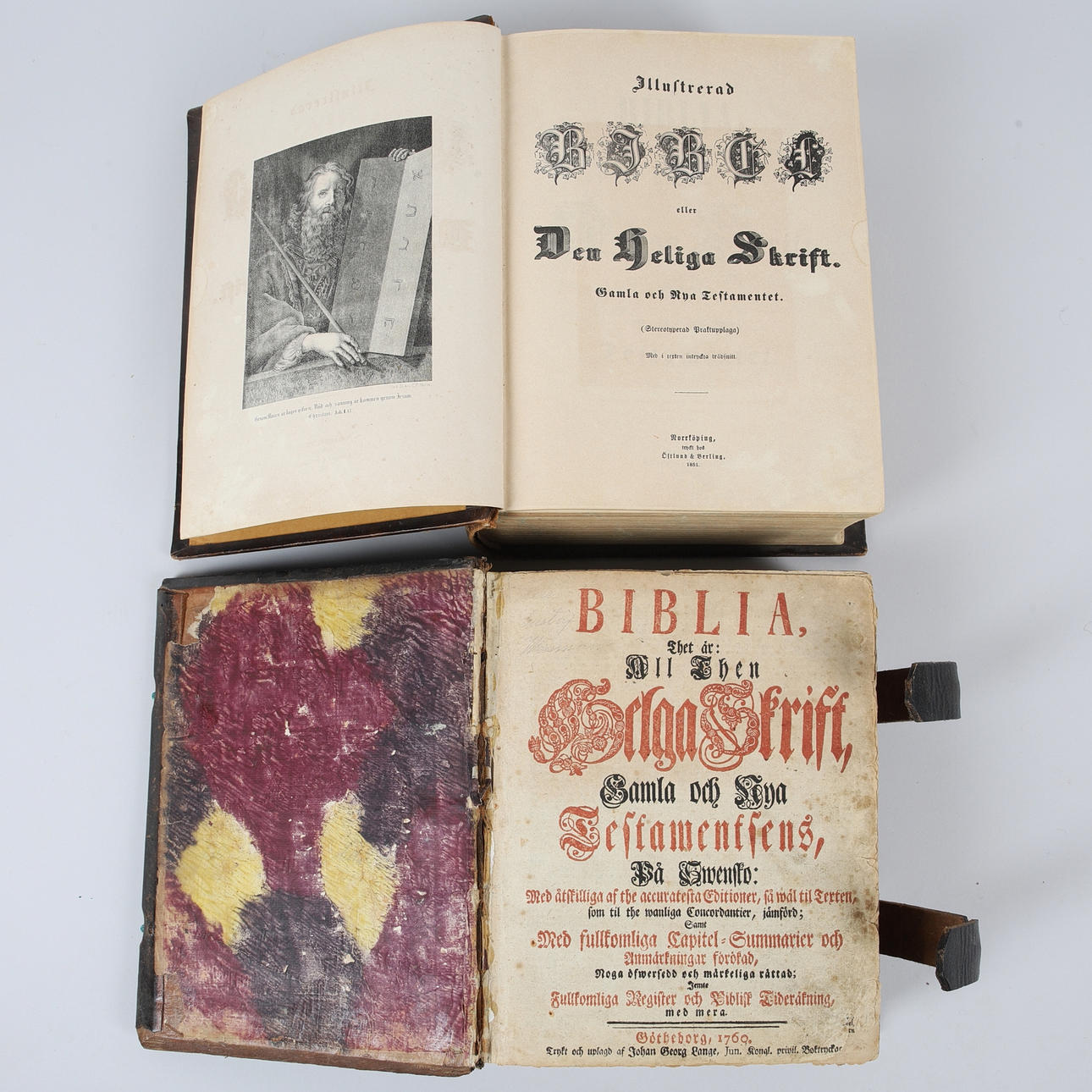 1769 & 1851. Ca 25x20 & 27,5x21,5 cm. Läderband.
