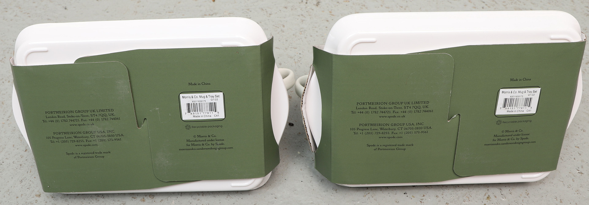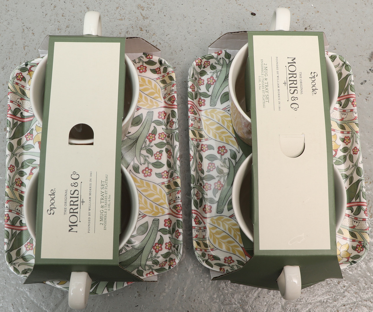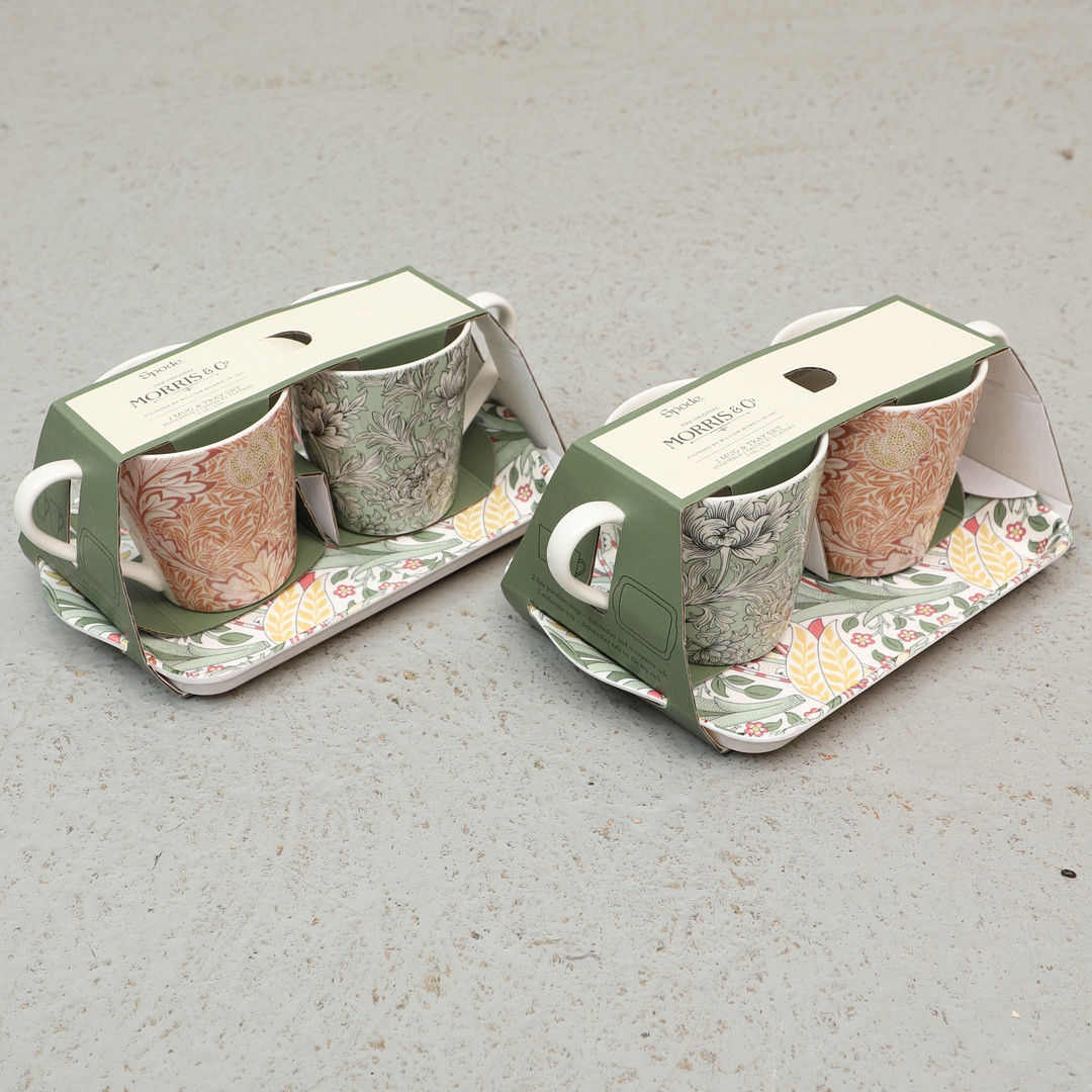 4345309. WILLIAM MORRIS. Efter. Mugg & brickset, 6 delar, porslin & melanin, Spode.