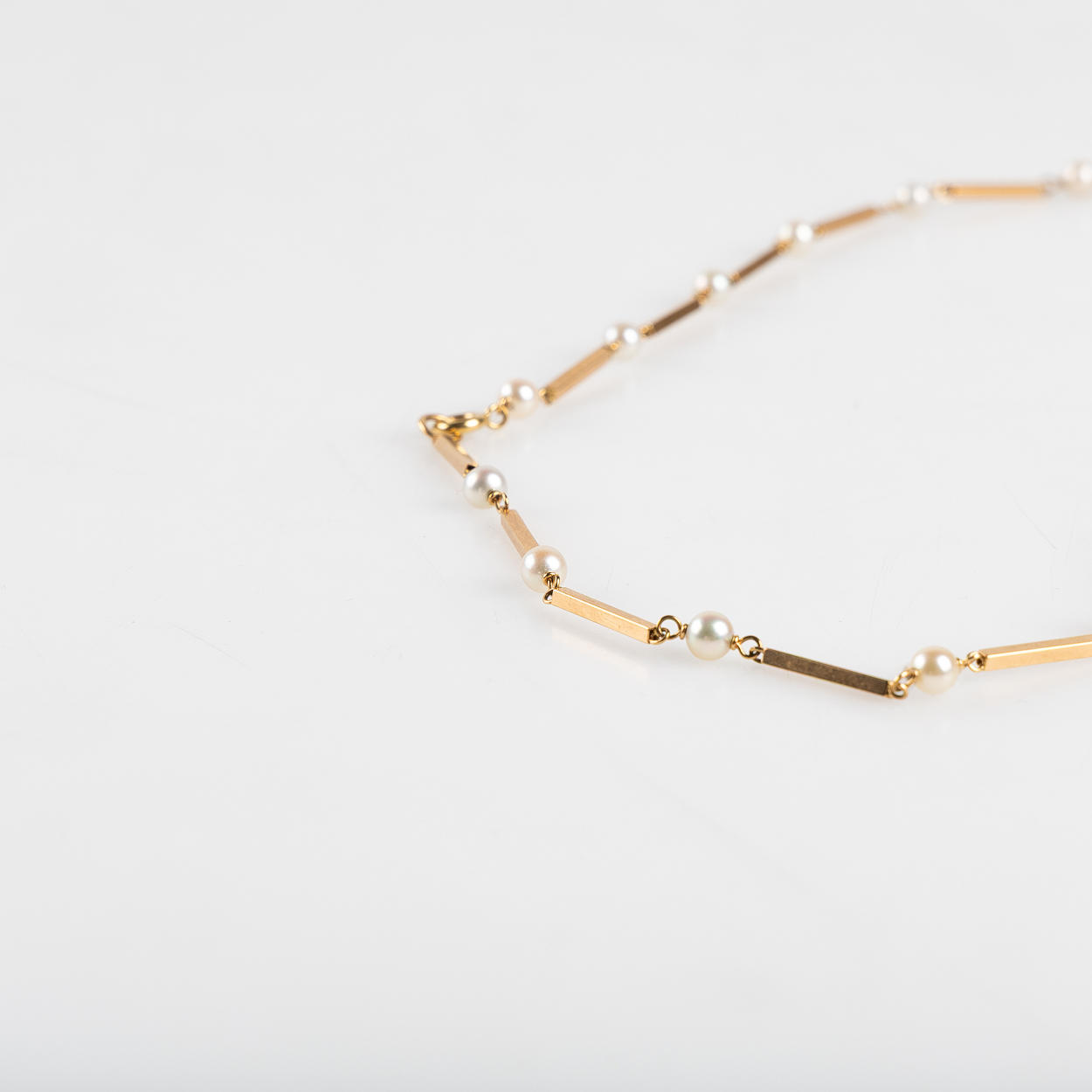 Armband defekt, en ögla behöver fästas/lödas. Slitage på pärlor förekommer.
