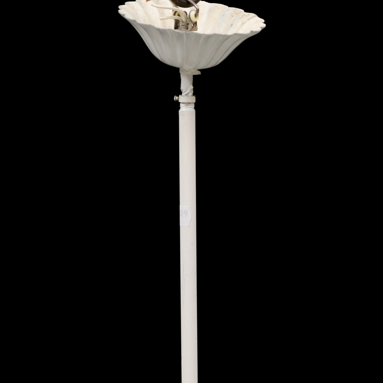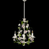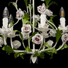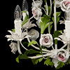 Vitlackerad metall med polykromt bemålade rosor och blad. För 6 ljuspunkter. Själva kronans höjd 62, total höjd 103, diam 50 cm.