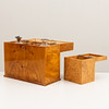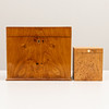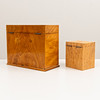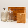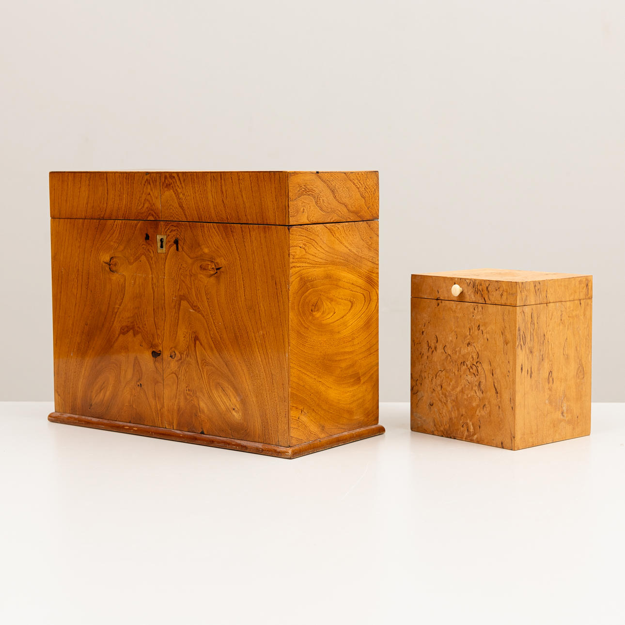 Två brännvinsflaskor medföljer. Längd 31, bredd 14, höjd 25,5, resp Längd 13,5, bredd 11, höjd 16 cm.
