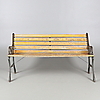 Sits och rygg av trä, på järnstomme. Längd 124,5 cm. Sitthöjd 37 cm.