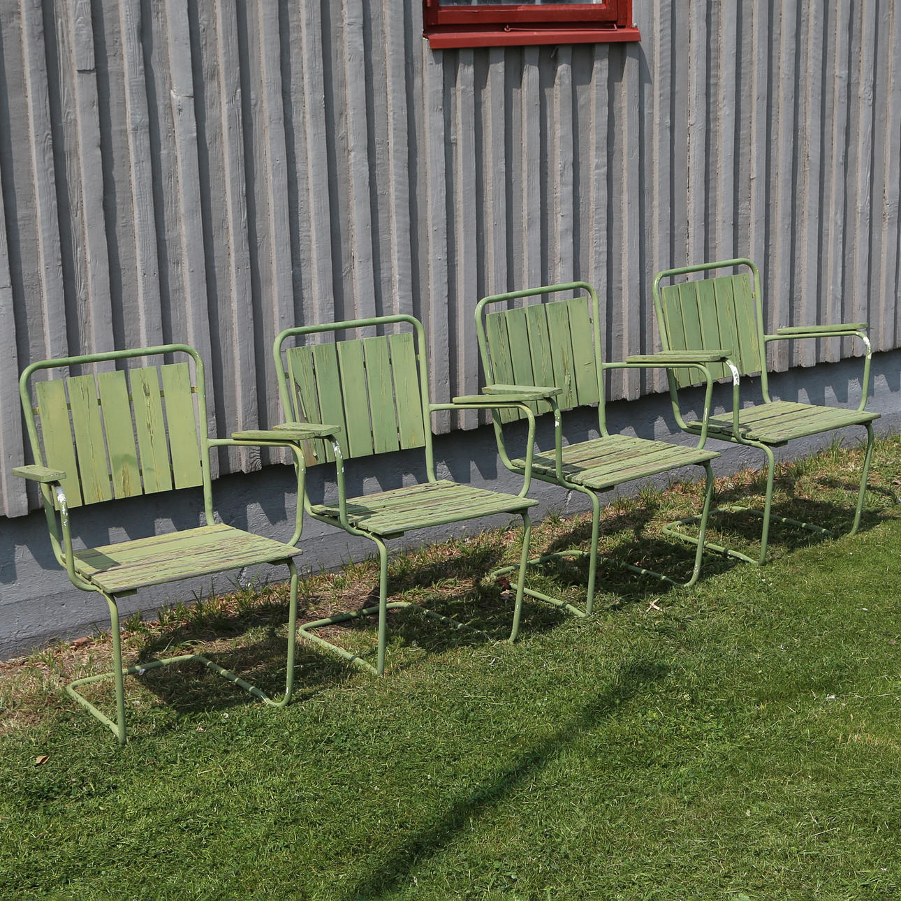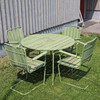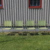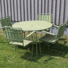 Bord höjd 66, diam 100 cm Stolar höjd 81, bredd 65, sitthöjd 41 cm.