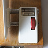 Skärmaskin med fällbar skiva i trä Längd 23,5, bredd 33, höjd 20 cm.