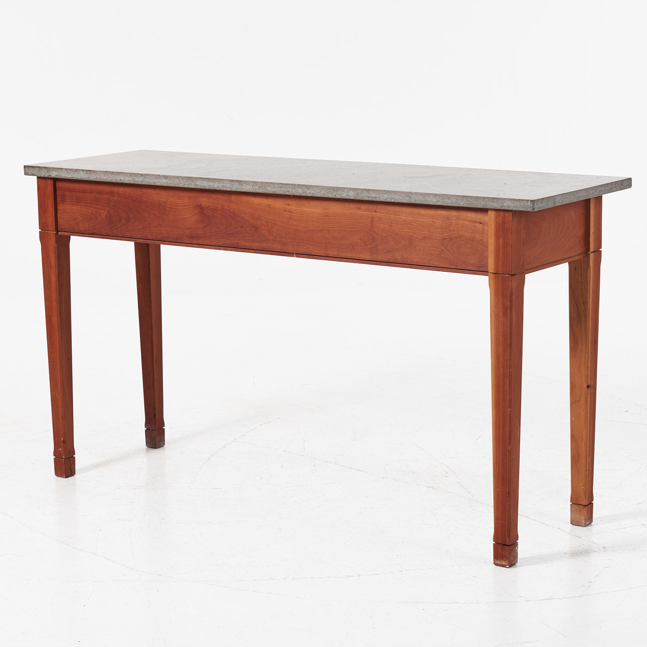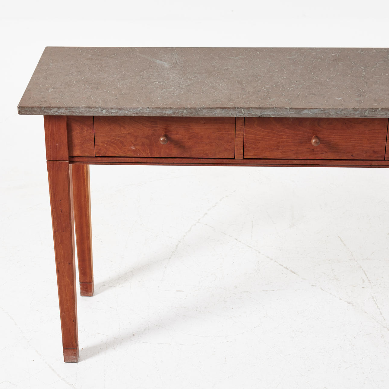3 lådor i sargen, kalkstensskiva, stomme i körsbär , höjd 81, 105 x 45 cm.