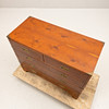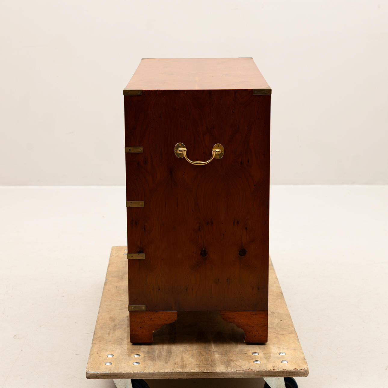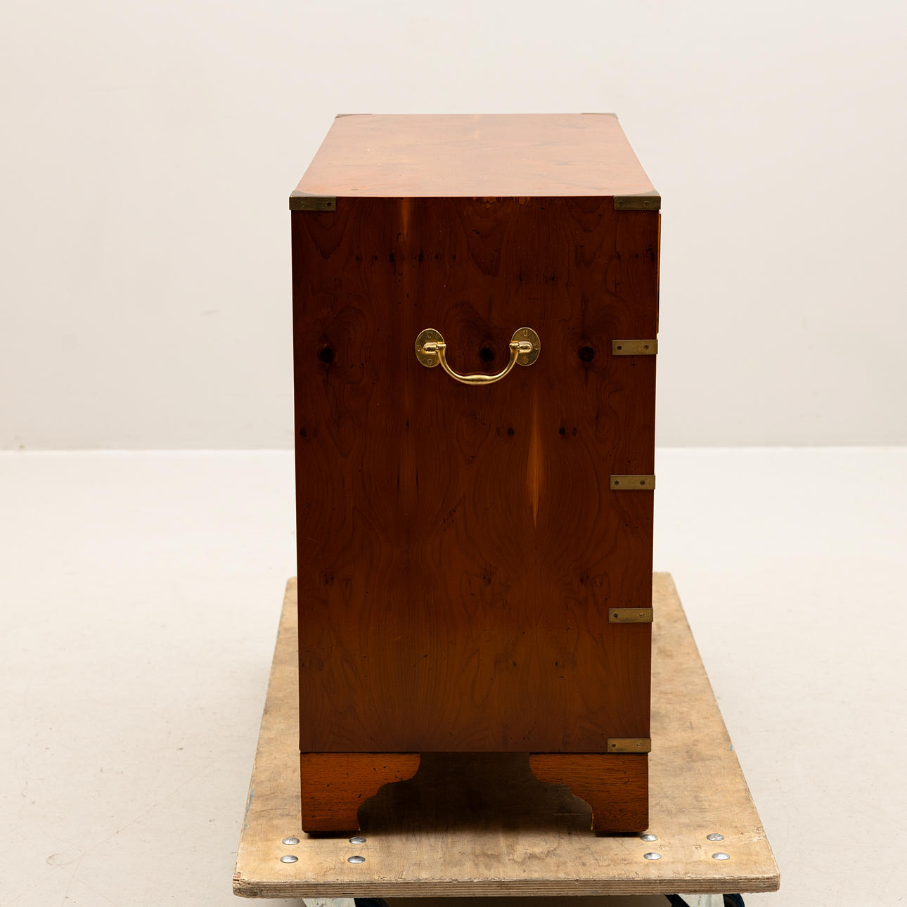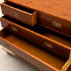 6 utdragbara lådor. Mässingsbeslag och handdtag. Längd ca 90, djup 40, höjd 74 cm.
