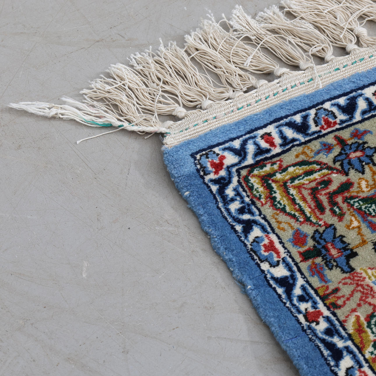 Bruksslitage, samt kantslitage och fläck på fransar.