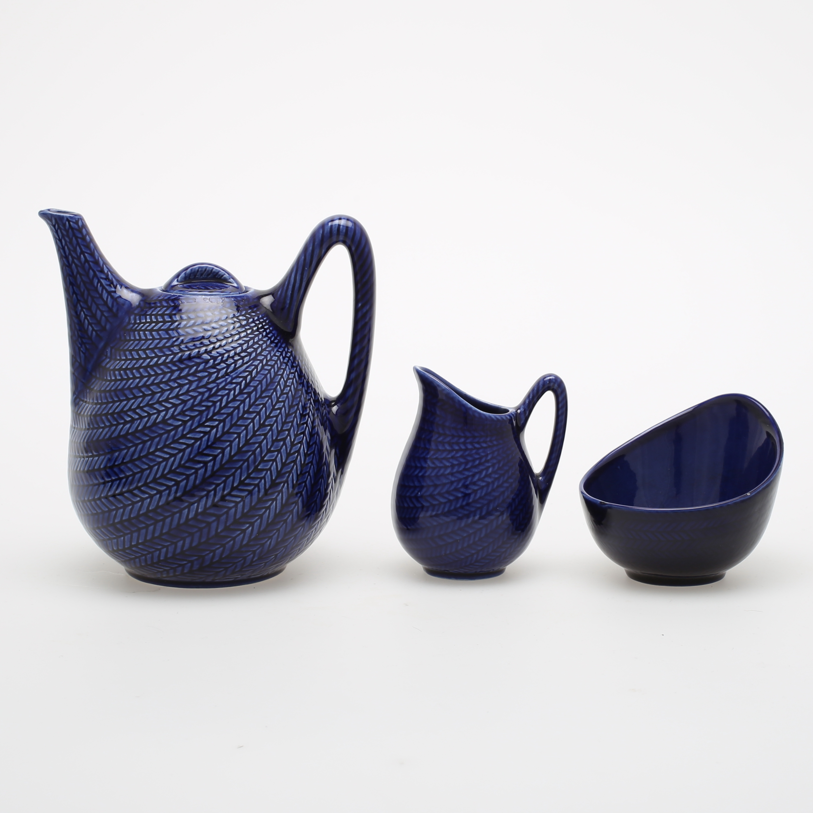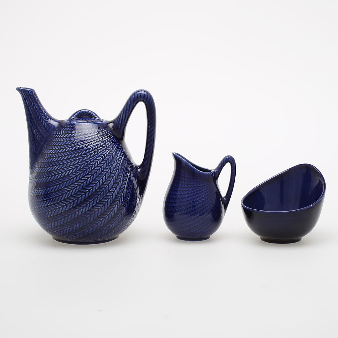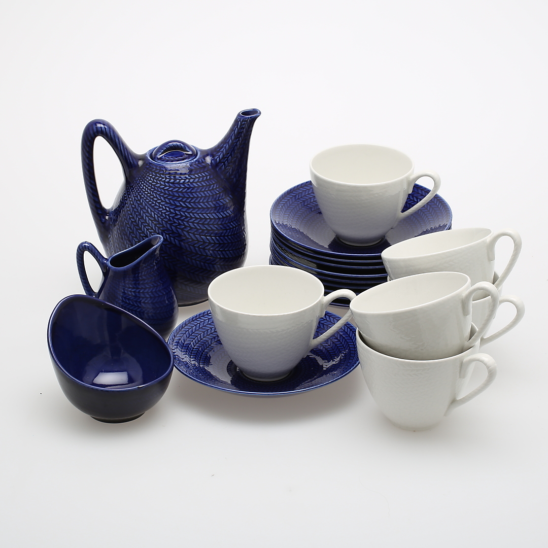 435241. HERTHA BENGTSSON. Teservis, 19 delar, flintgods, "Blå Eld" Rörstrand.