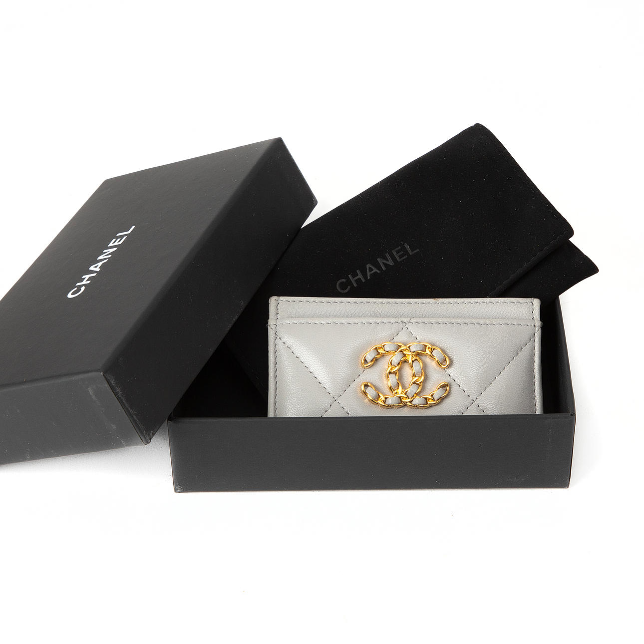 Quiltat mönster med CC-logotyp i guldfärgad metall. Med fyra fack. Invändigt märkt "CHANEL" i guldfoliering.