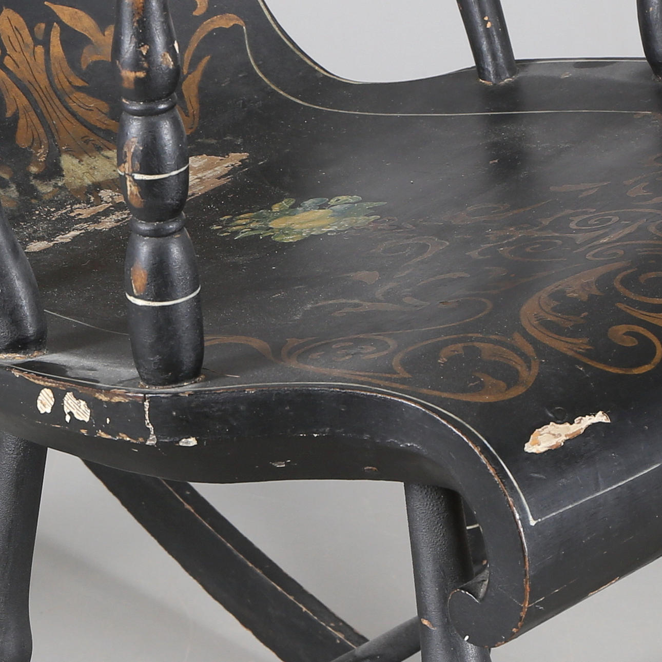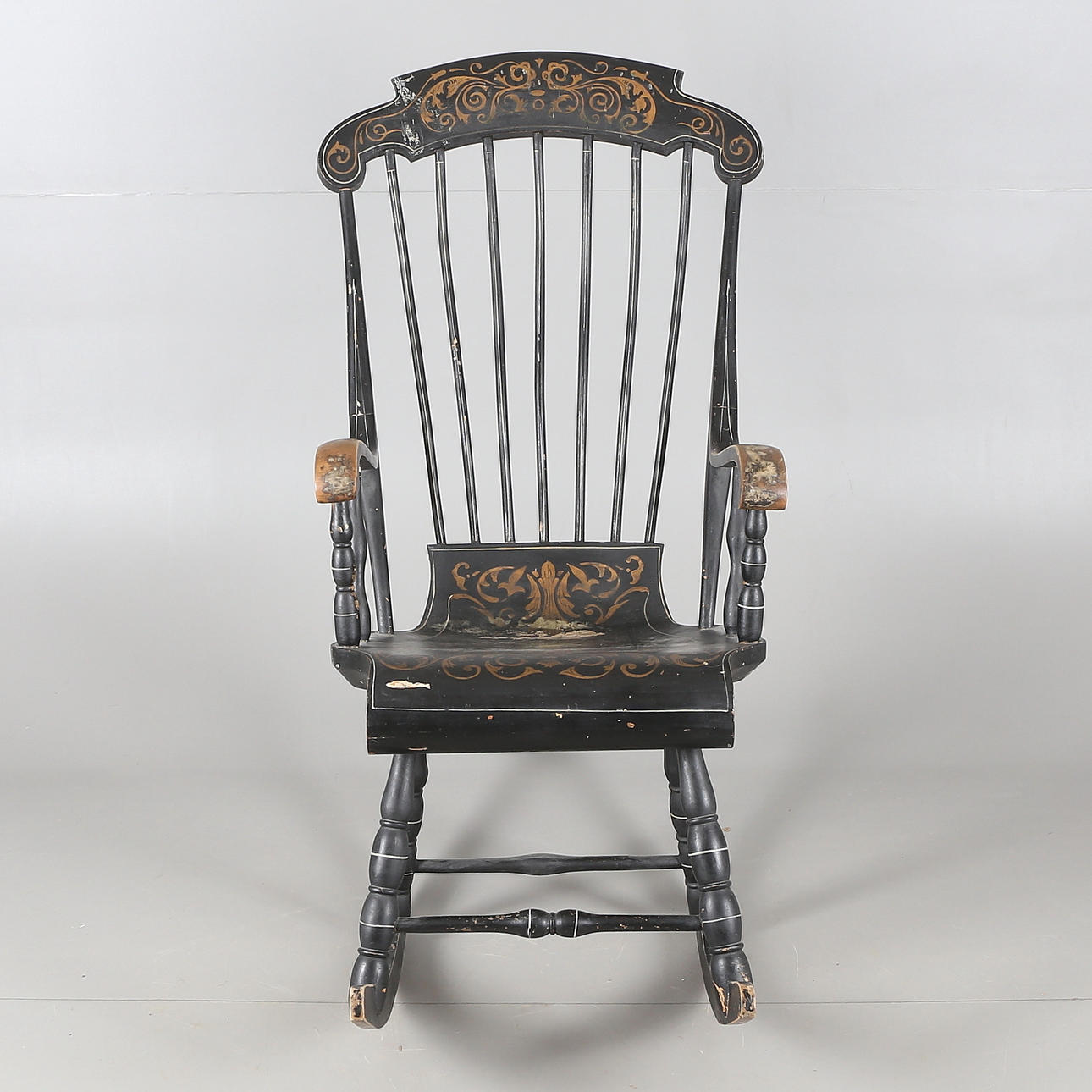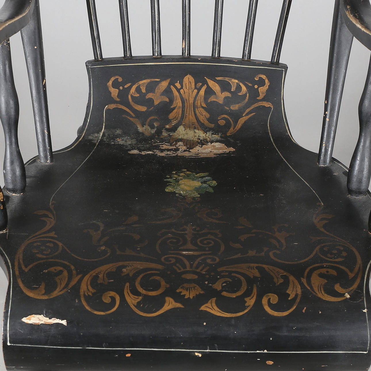 Guldfärgad dekor. Sitthöjd 50 cm. Rygghöjd 123 cm.