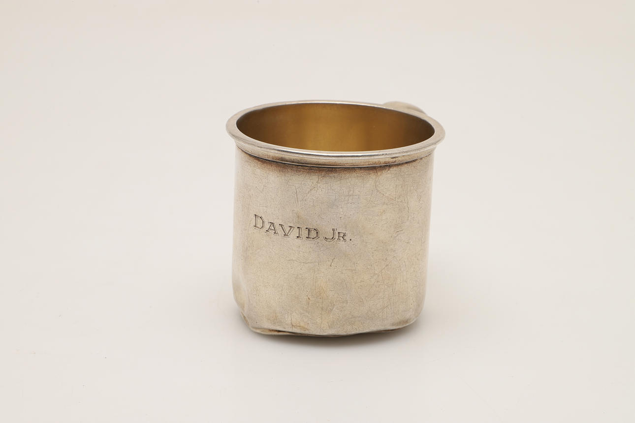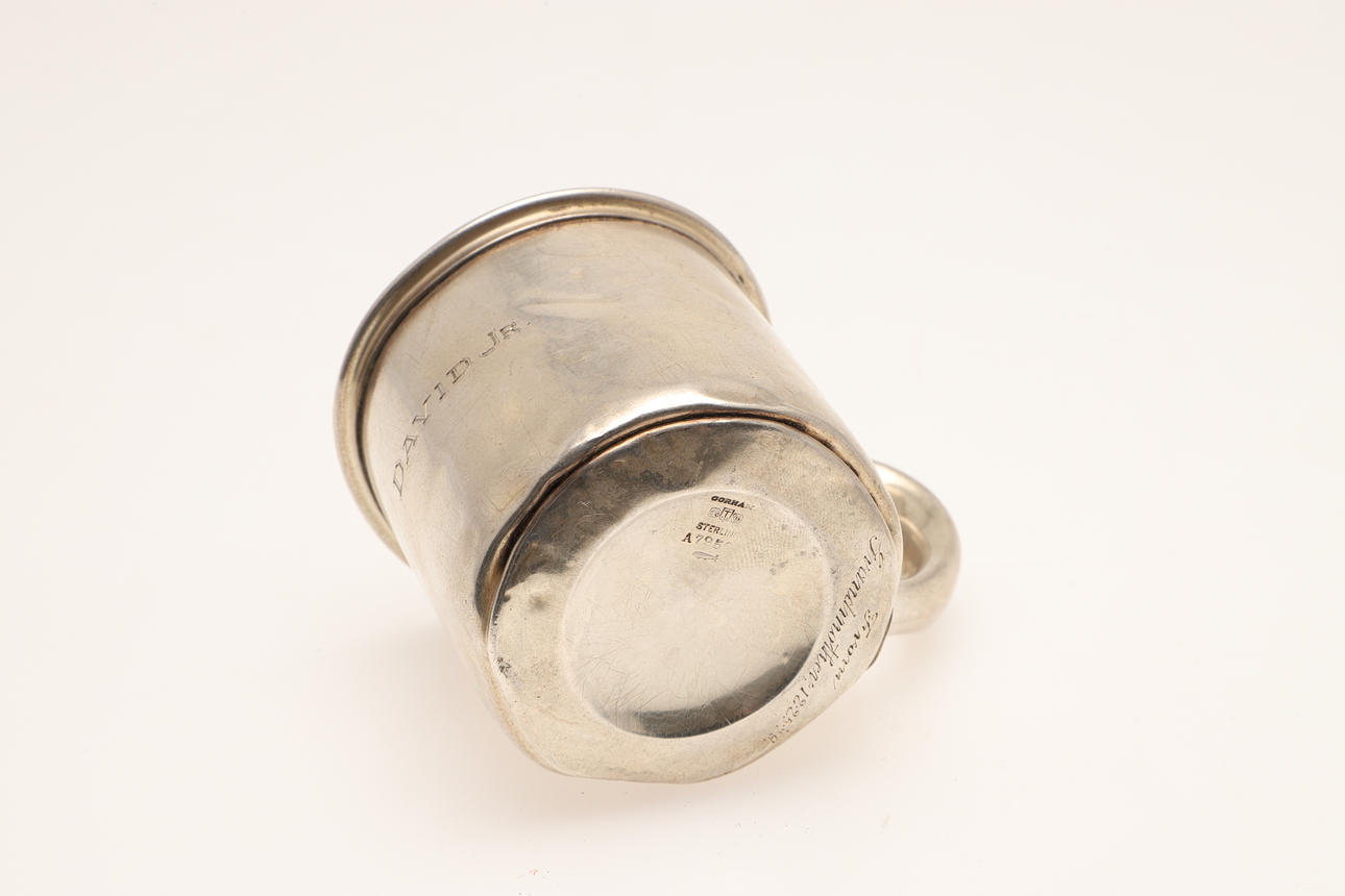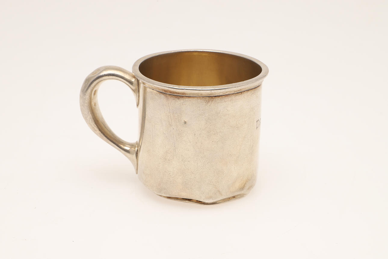 DOPMUGG I AMERIKANSKT SILVER OCH ETT SILVERFICKUR.