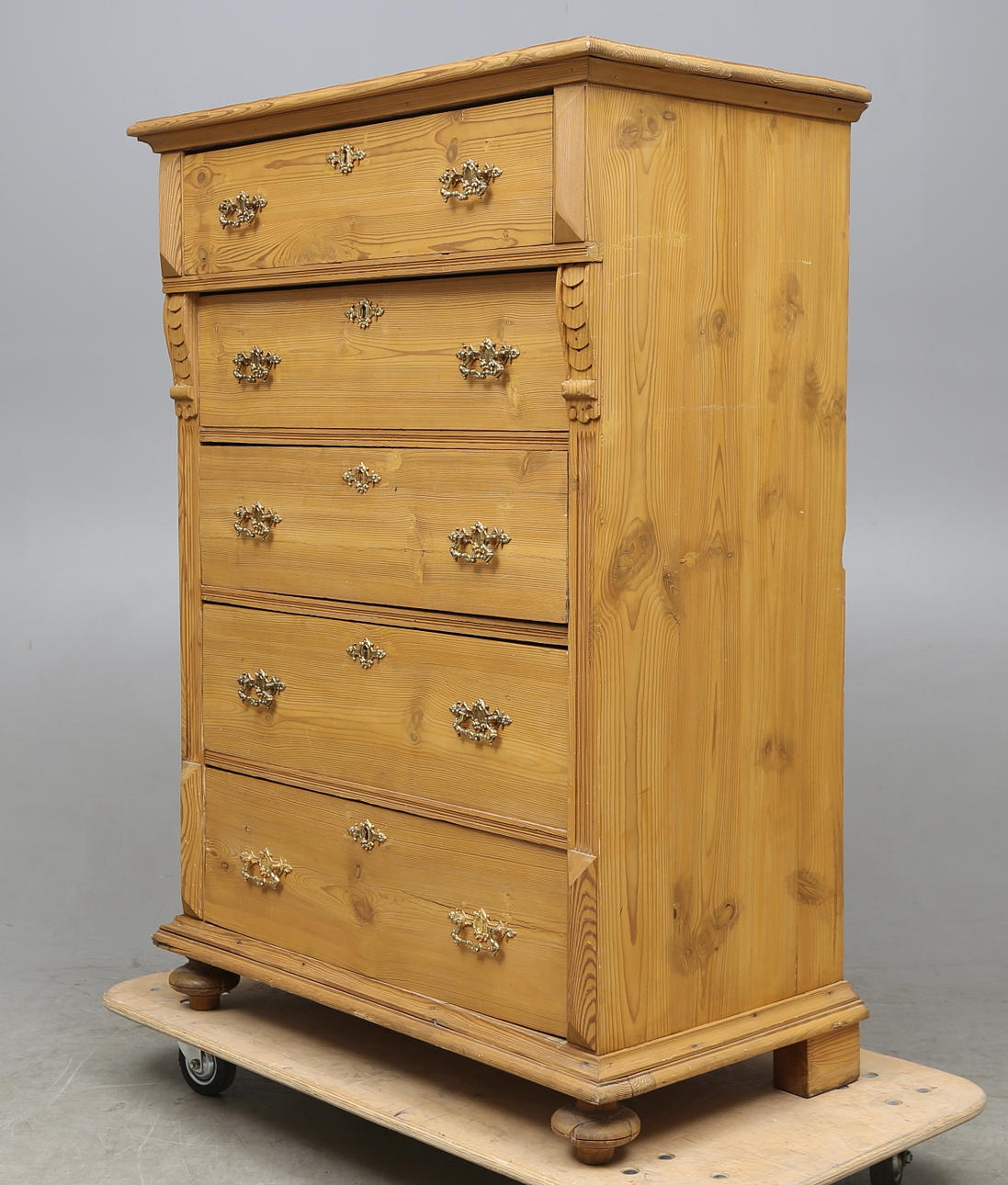 Förgyllda beslag. Höjd 125 cm. Längd 91 cm. Djup 50 cm.