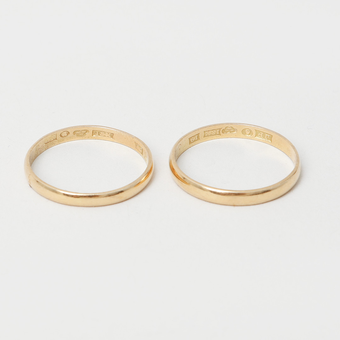 4354037. RINGAR, 2 stycken, 18k guld. Vikt 6.2 gram.