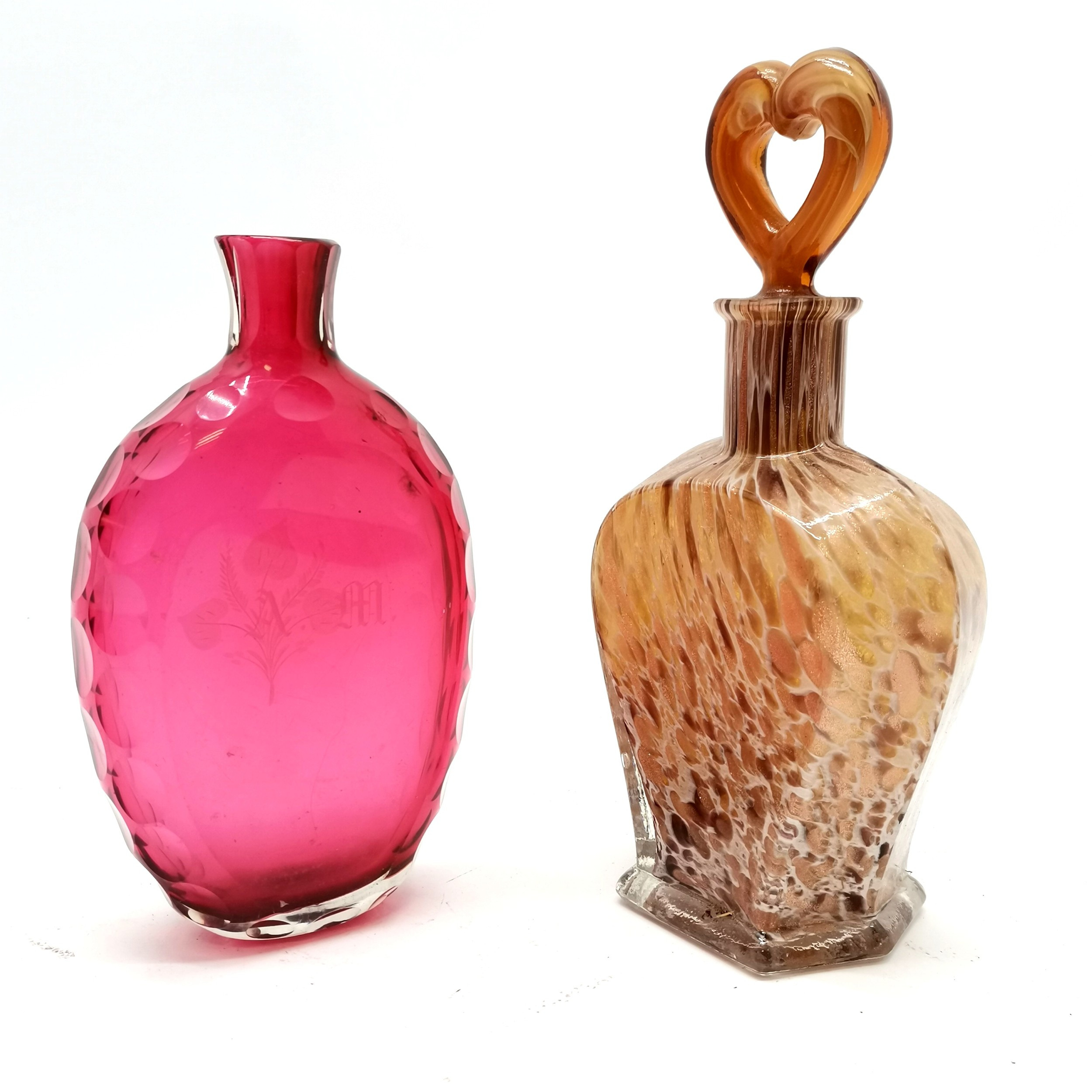 4354555. STOR ANTIK TRANBÄRSGLASFLASKA.