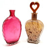 Stor antik tranbärsglasflaska med graverad detalj (18,5 cm lång) t/w ovanlig toalettburk med hjärtformad propp.