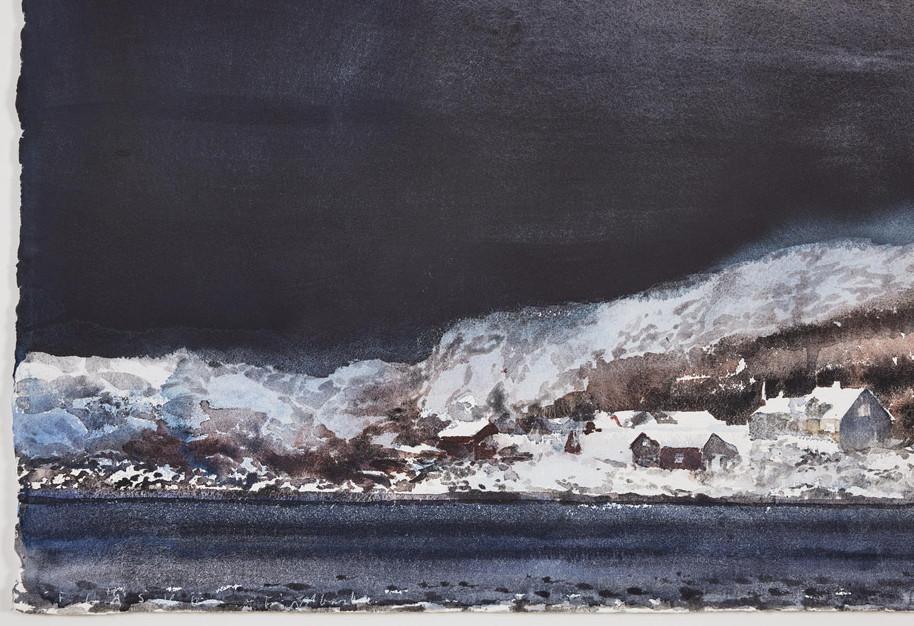 Akvarell på papper, 75 x 105 cm, inklusive ram 124 x 94 cm. Signerad Lars Lerin och daterad 2019.