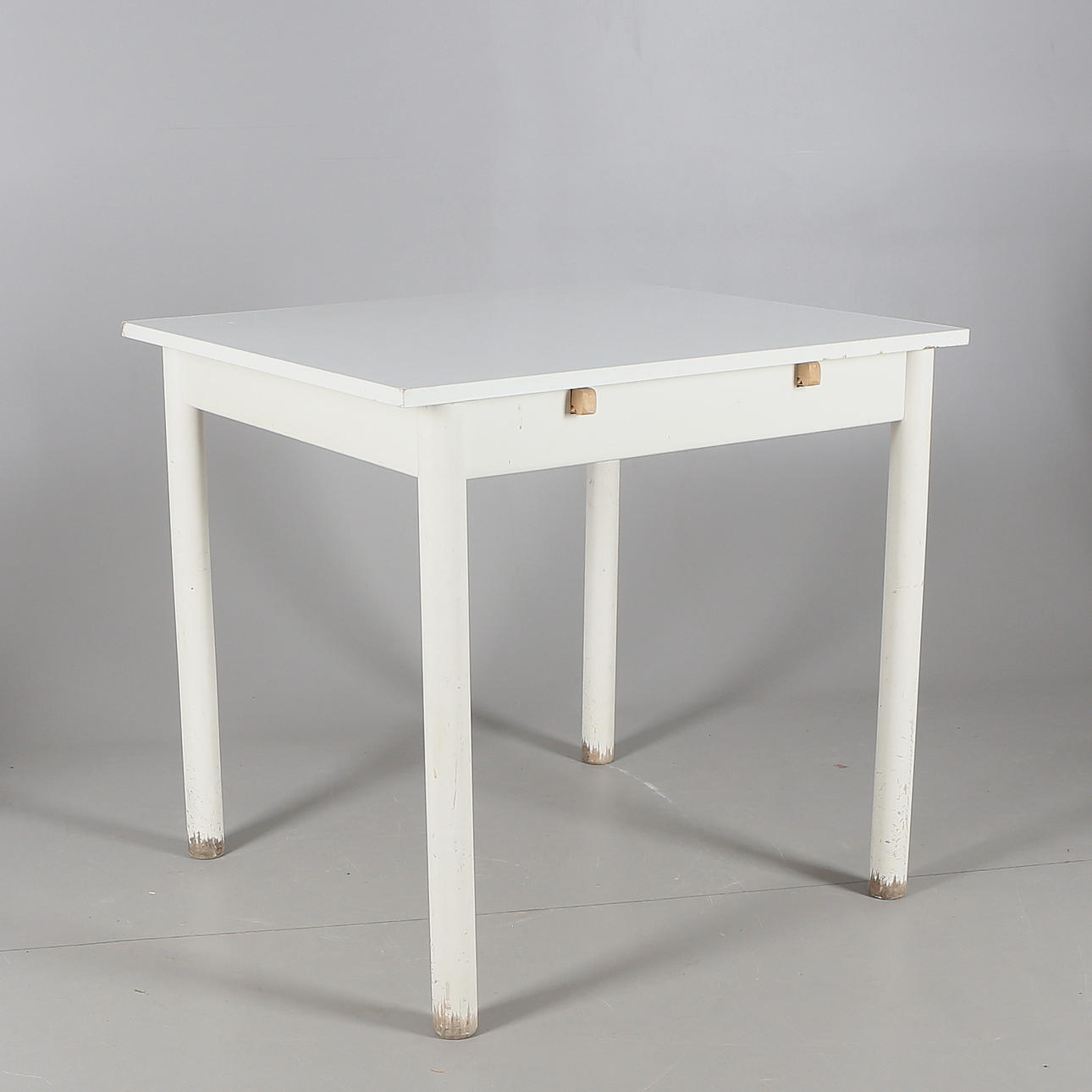 Bruksslitage (hårdare på bordsben), märken/repor, smärre skador, bord saknar iläggsskivor.