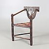 Rikligt skuren dekor. Medföljande lös stoppad sits.