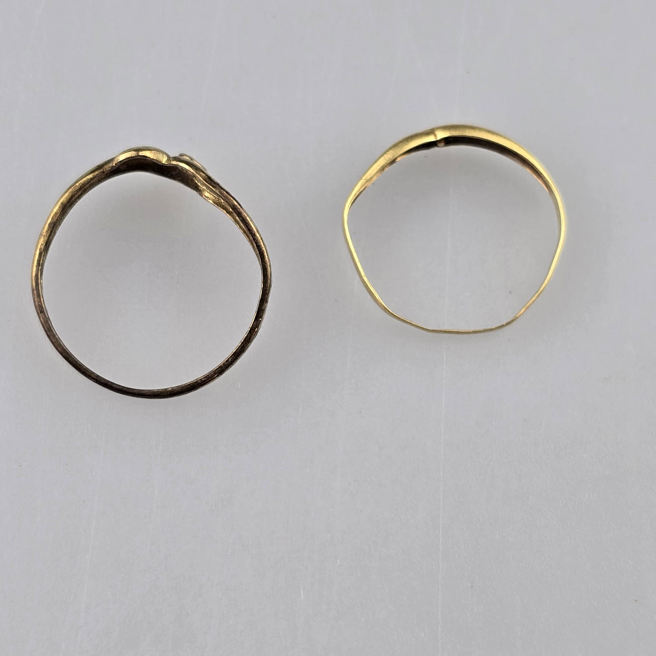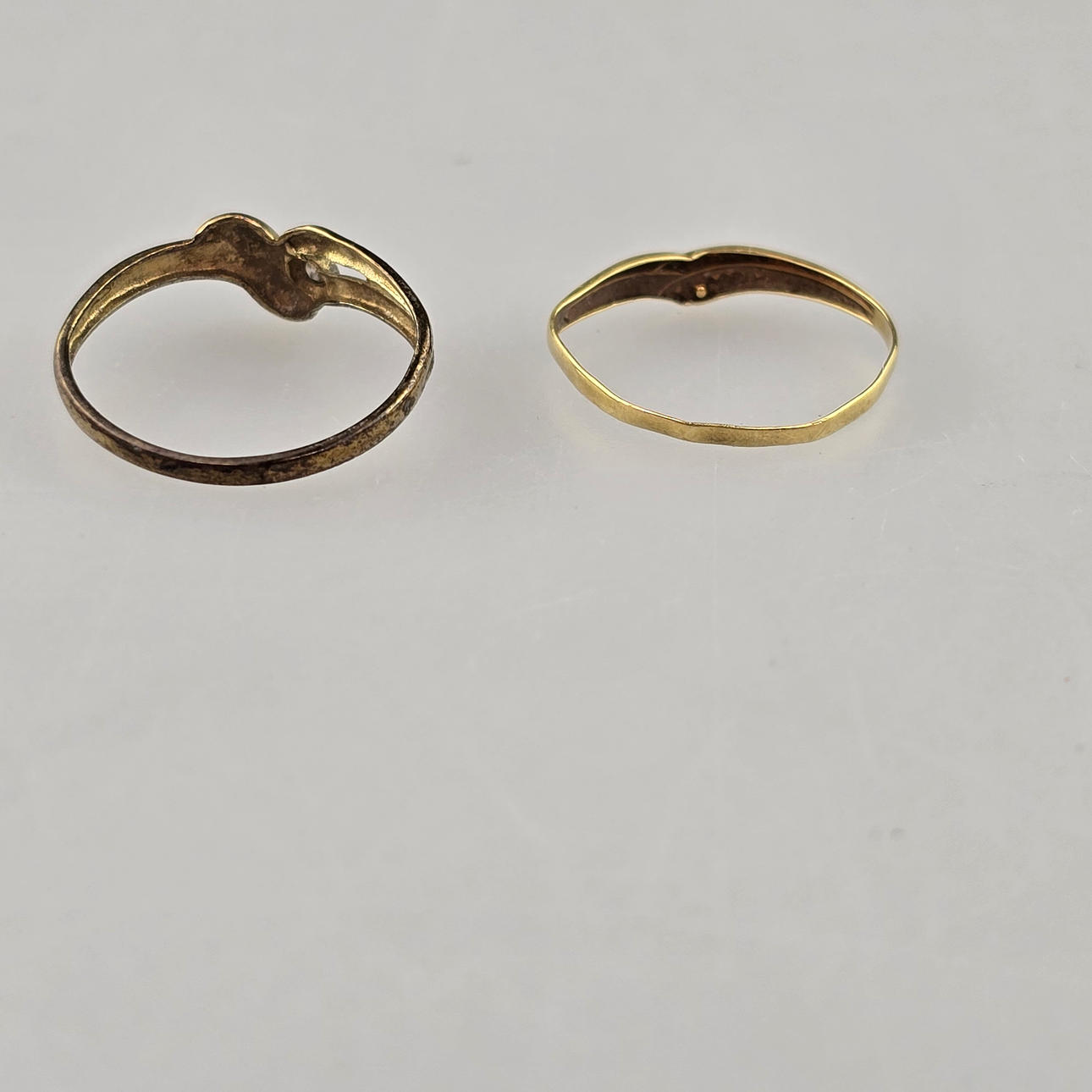 2 guldringar, 1 x 18 kt guld (0,7 gram), 1 x 9 kt guld (0.93 gram) var och en med en liten diamant,