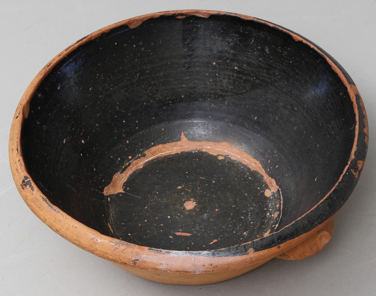 Med handtag, invändig glasyr, längd ca 50 cm.