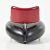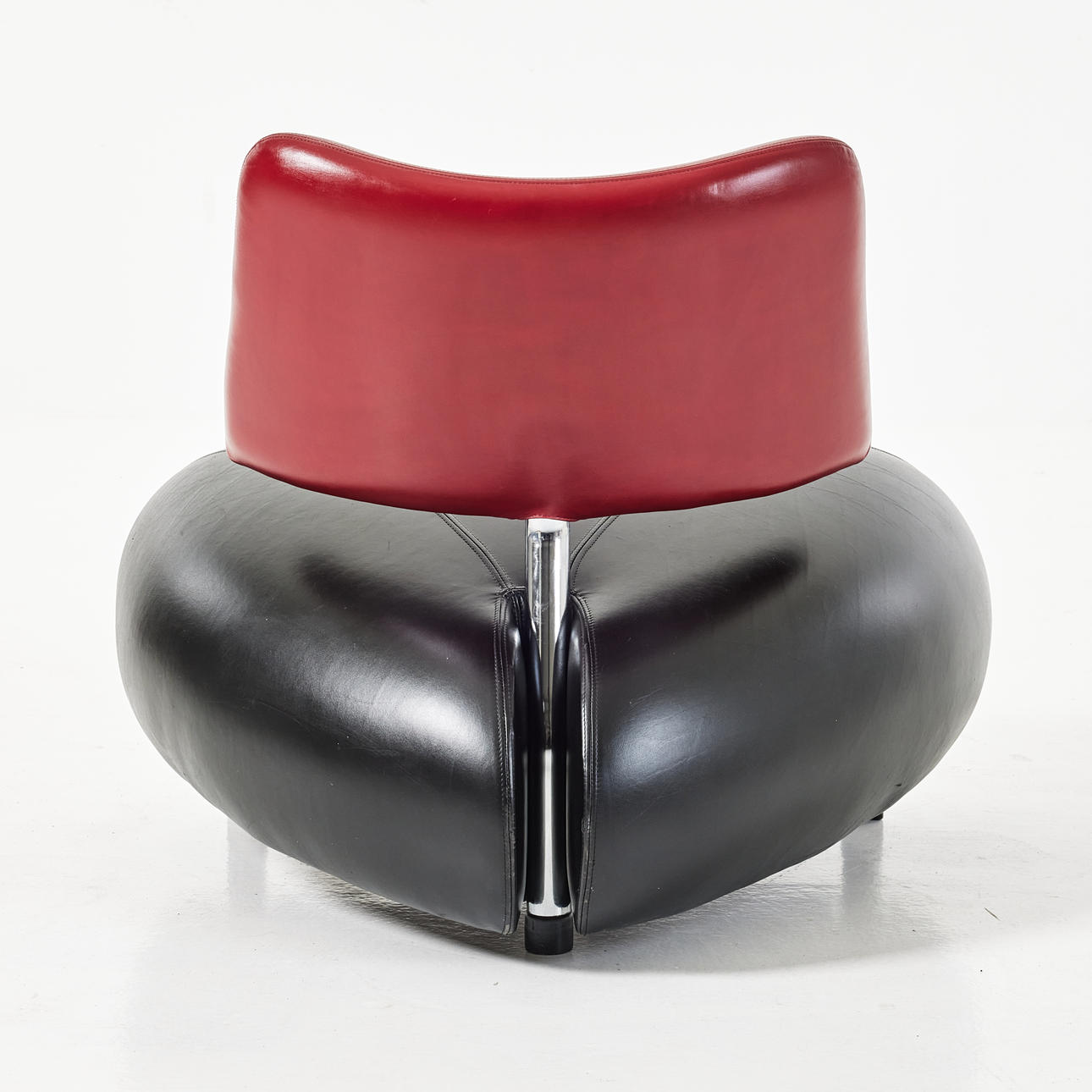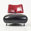 Kromad metall, sits och ryggstöd klädd i svart respektive rött läder, mått ca 73, 75 x 90 cm.