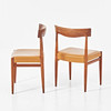 I teak, sits i brunt skinn, klädsel med pärlnitar, mått ca 79, 53 x 45 cm.