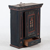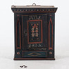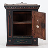 Väggskåp i furu med rikt bemålad dekor i svart, rött, guld och grönt. Dörr med årtalet 1833 och initialerna N.O.J., omgiven av målade blommor.