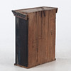 Karnisformat krön med list i rutmönster. Inredning med två fasta hyllplan.