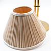 Bordslampa med avtagbar textilskärm och mässings detaljer.