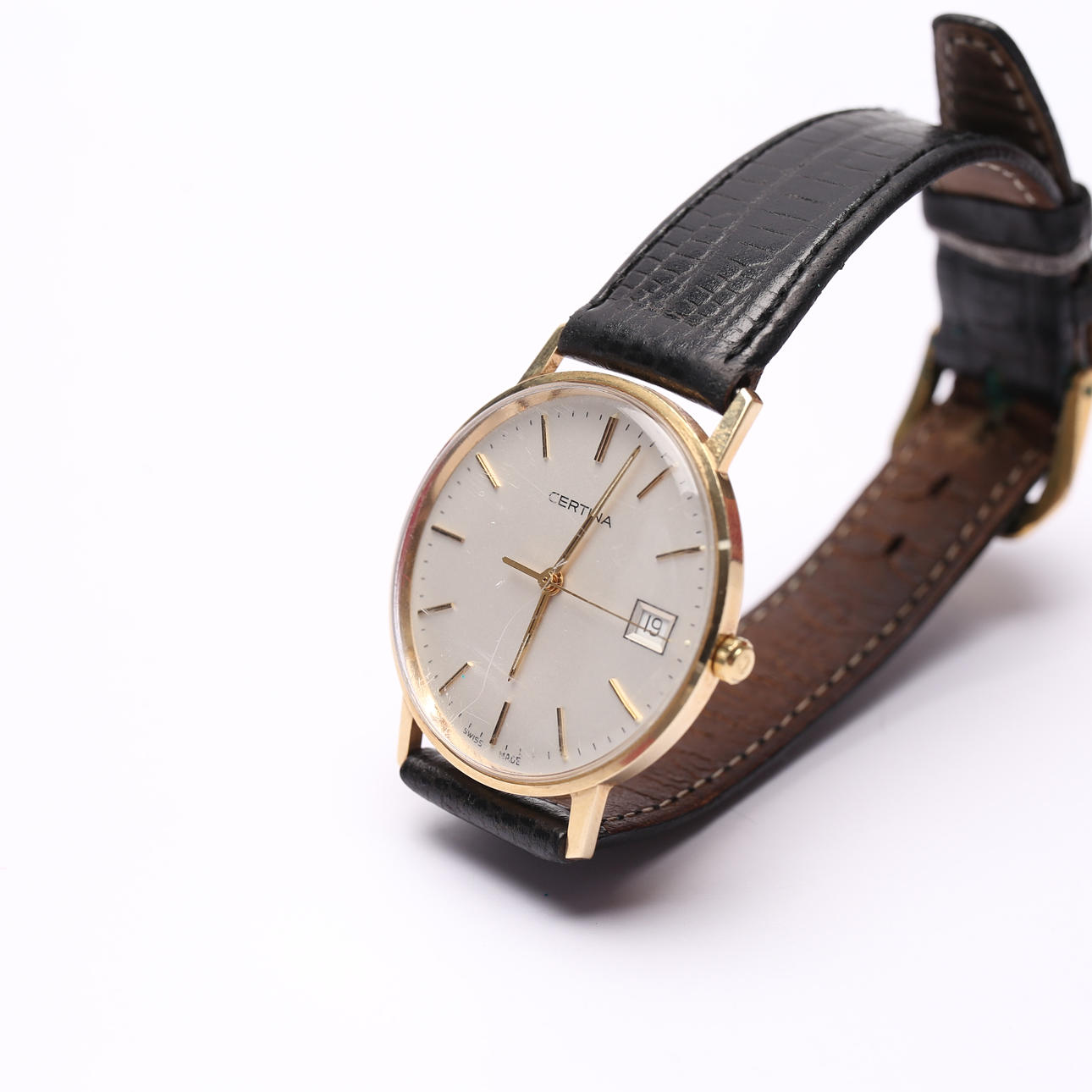 Bruksslitage. Repor och märken förekommer. Armbandet med slitage. Ingen funktionsgaranti lämnas. Behov av batteribyte.